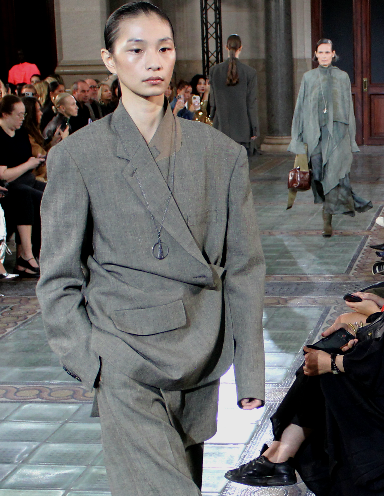 Uma Wang presented her Spring/Summer '24 collection in the beautiful Americain Cathedral in Paris during Paris Fashionweek. With models crossing through the church paths (not knowing where to watch because they were everywhere), we were honoured to attend our first show of the brand. After 15 years Uma Wang has developed her own distinguished design language with an unique approach to create silhouettes by using fabrics in extraordinary ways. The most outstanding looks of the collection were the ones made out of potato sacks and paper, creating the most impressive bold shapes executed in an earth toned color palette. The pop of bright pink completed the collection giving it a joyful touch by using clever tailoring and screaming luxury in an artistic manner.